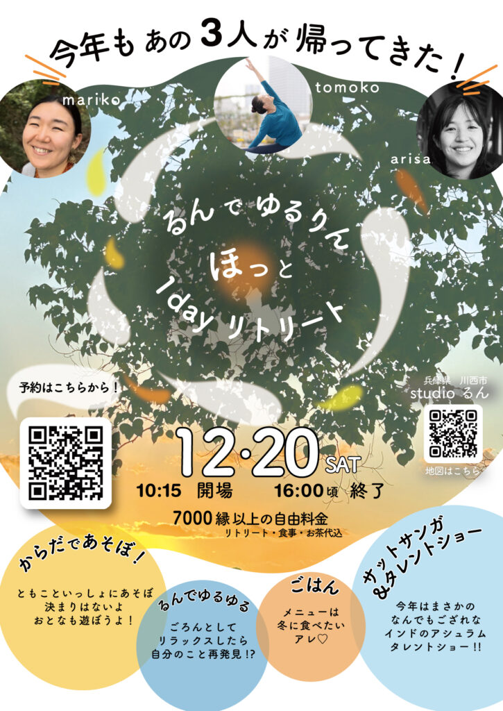 ようこそ『studioるん|Yogaな日々』へお越しくださいました。
